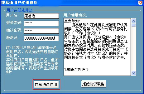 捷易通软件采用注册激活码形式注册软件,具体注册方式如下图所示: